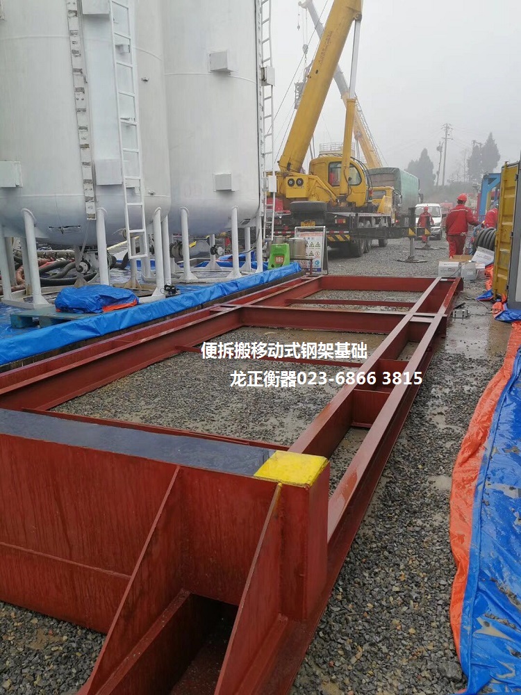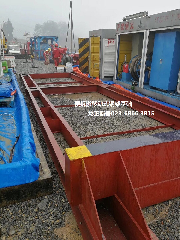1、便拆移式钢架结构基础地磅-便拆搬式钢架结构基础地磅的钢架结构基础是根据火车轨道的原理,专为使用周期短,需要经常搬迁更换使用场地的用户量身打造的新款产品。适用于各种使用工期短的工地、油井、矿山、料场、码头等企业用户。