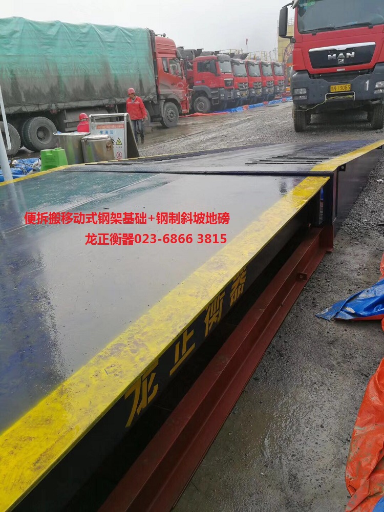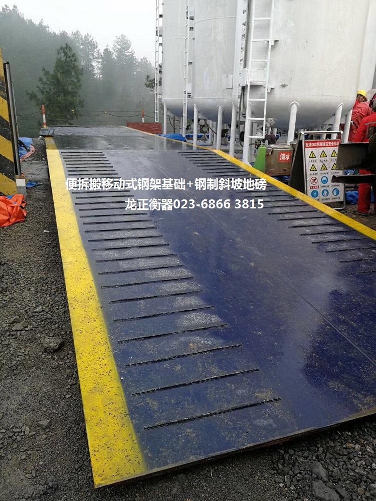 4、便拆移(搬迁)式地磅钢架结构基础:用户只需把把场地平整(安装地磅位置的地方水平基本一致)出来;安装完毕后,两端斜(引)坡用石头、碎石、泥土填充平整,车辆能够正常上下地磅即可。也可以把场地平整出来硬化安装,斜坡也可以硬化处理,使用性非常灵活。假如用户对使用追求省事而外观又美观的话,两端斜(引)坡还可以选择钢制引坡;只是钢制引坡的成本造价比较高。详情可电话咨询龙正衡器公司(023-6866 3815)的专业导购人员。
